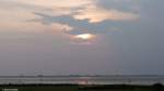 Blick vom Deich beim Husumer Campingplatz hinüber nach Nordstrand (Schleswig-Holstein, Juli 2014)