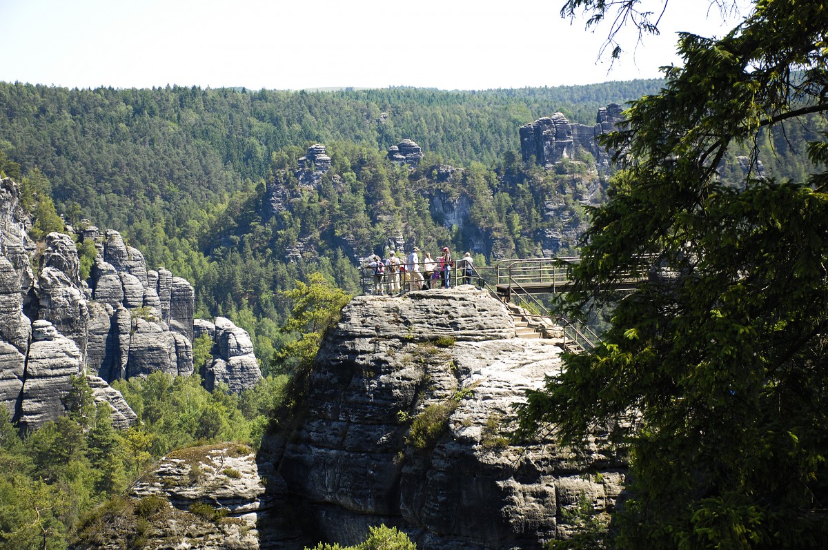 Aussichtspunkt am Verlorenen Turm im Nationalpark Sächsische Schweiz. Aufnahme: Juni 2014.