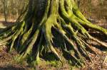 Im Stiftungsland Schäferhaus bei Flensburg. Schneebedeckte Bäume von unten nach oben gesehen. Aufnahme: Dezember 2011.