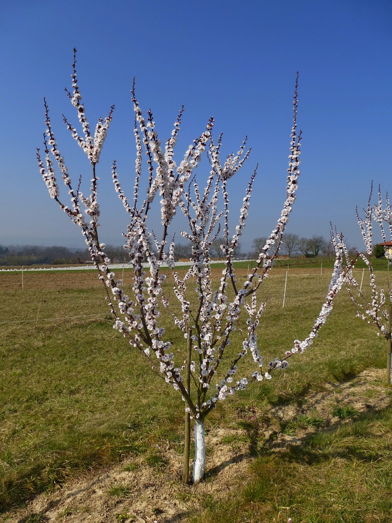 Aprikosenbäumchen in voller Blüte am 14.März in der Rheinebene