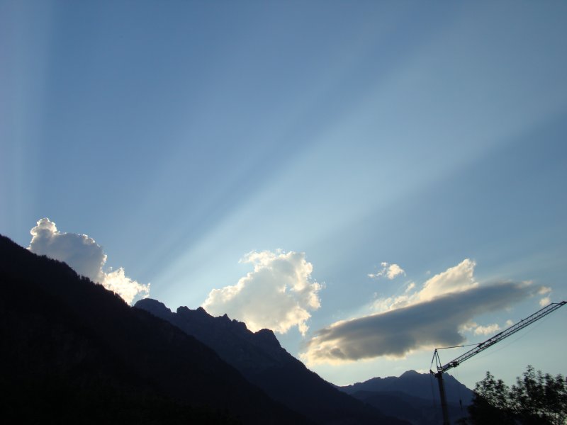 Während im Tal unten die Sonne schon längst weg ist, leuchten ihre strahlen immer noch über die Bergspitzen.Von Erstfeld aufgenommen am 14.07.2007