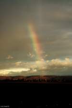 Regenbogen steigt scheinbar hinter einer Tanne auf. - 11.05.2014