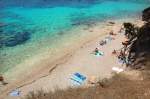 Von Supetar auf der Insel Brač (HR) beobachtet, braut sich über dem Gebirge auf dem Festland bei Split ein Gewitter zusammen. Glücklicherweise blieb es jedoch da, wo es herkam.