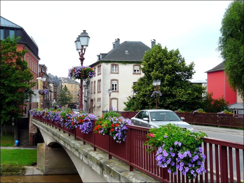 Mit schönem Blumenschmuck an der Brücke über die Alzette werden die Besucher in Ettelbrück begrüßt. 07.06.08