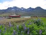 Djúpivogur in Ausfuhrland im östlichen Island. Bild vom Dia. Aufnahme: Juli 1995.