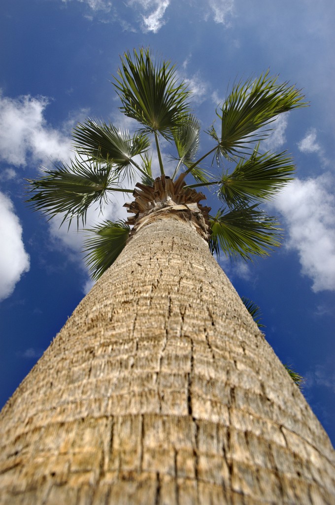 Palme (Trachycarpus fortunei) in Los Cristianos - Teneriffa. Aufnahme: Oktober 2008.
