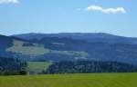 Blick vom Ortsteil Thurner über die Schwarzwaldhöhen, links der 1241m hohe Kandel, rechts im Hintergrund der Ort St.Märgen, Juni 2015