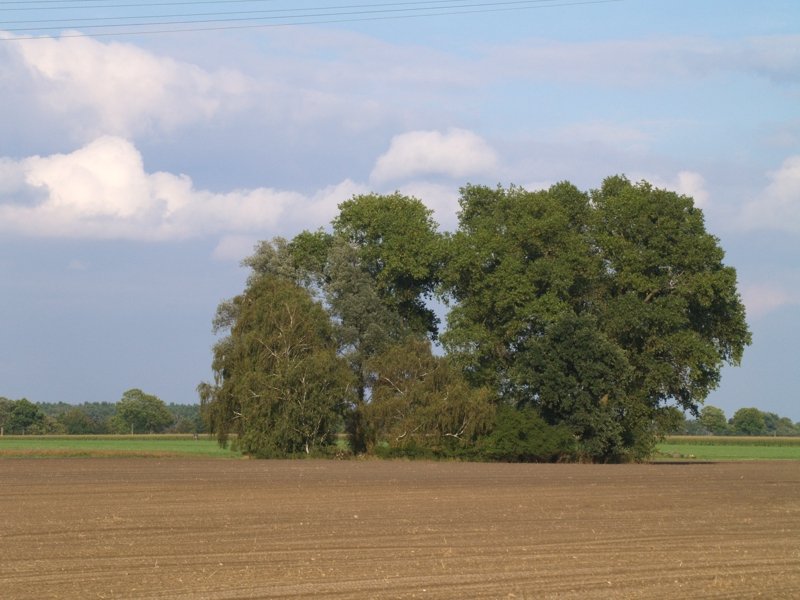 Blick zu einem Teich über ein Feld am Weg nach Neu Premslin; August 2008