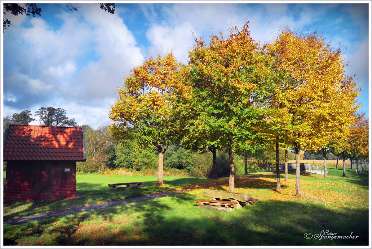 Im Bild der Suhorn Höhenrücken über dem Wümmetal, dort entspringt aus Quelltöpfen die Wümme, gegenüber liegt der Wümmeberg, der Wanderweg führt uns weiter nach Nieder-& Oberhaverbeck, dort finden wir auch große Parkplätze für die Besucher. Spätsommer 2013.