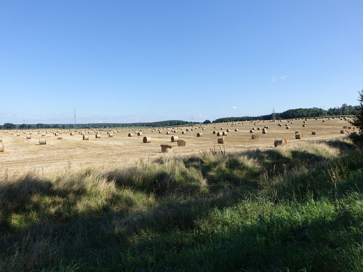 Strohballen auf einem abgeernteten Getreidefeld bei Kolbacz, Westpommern (31.07.2021)