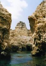 FUSETA, 03.10.1989, Blick von der Fuseta vorgelagerten Sandbank Ilha de Armona auf das Festland -- eingescanntes Dia