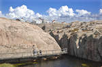 Blick auf die Insel Brimskär vor Kleven an der Bohusläner Schärengarten-Küste. Die Westküste Schwedens und der Schärengarten sind gesäumt von Fischerdörfern, Stränden und Badeplätzen und Granitschären. Aufnahme: 2. August 2017.