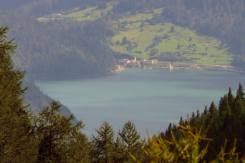 Lago Poschiavo mit Miralago von Alp Grüm aus (420er-Teleaufnahme) am 18.08.2008