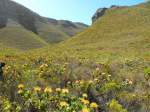 Panorama-Bild (3 Bilder) aufgenommen von der Irene Road in Somerset West. Im Hintergrund die Hottentos Mountains, darunter Gordons Bay. Die Hochhaeuser gehoeren zu der Ortschaft Strand. In der Ebene breitet sich Nomzamo und Lwandle aus, die Wohngebiete der schwarzen Bevoelkerung. Somerset West, 28.11.2010