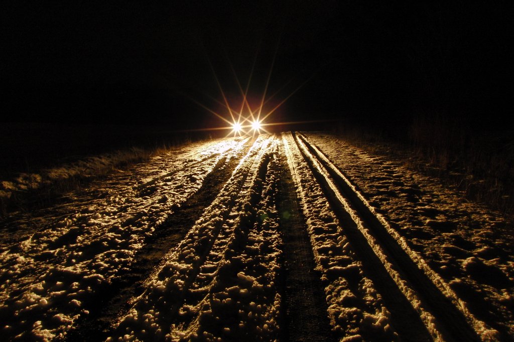Winterabend an der B 96 bei Brandshagen kurz vor Stralsund