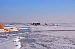 Blick über den gefrorenen Strelasund vom Dänholm aus Richtung Rügen, 23.01.2010