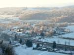 Winter-Panoramaversuch von Kirchheim bei Euskirchen. Rechts Nebelwand, Rest in der Sonne - 26.01.2010