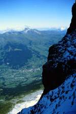 Blick auf Grindelwald aus der im Tunnel der Jungfraubahn gelegenen Station Eigerwand.