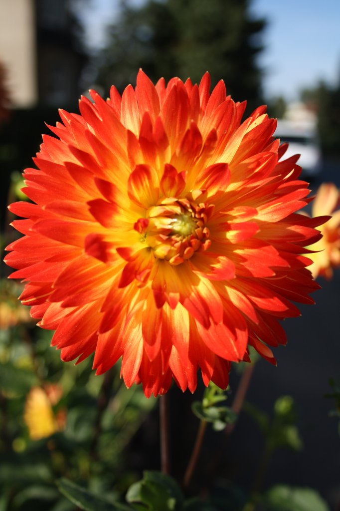 Eine orange-gelbe Dahlie in fotogafiert in Lehrte am 24.09.2011