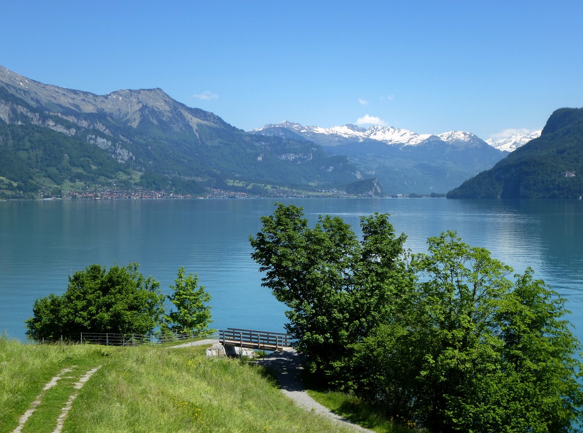 Blick vom Nordufer über den Brienzersee Richtung Interlaken, Mai 2015