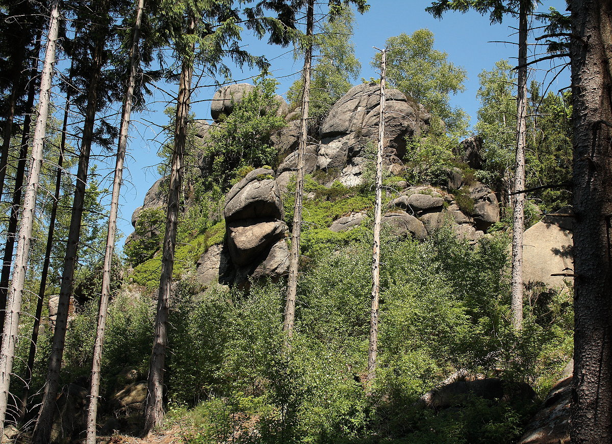 Die Mooswand, einer der vielen Felstürme an den Berghängen über dem Okertal; Aufnahme vom frühen Nachmittag des 05.06.2015...