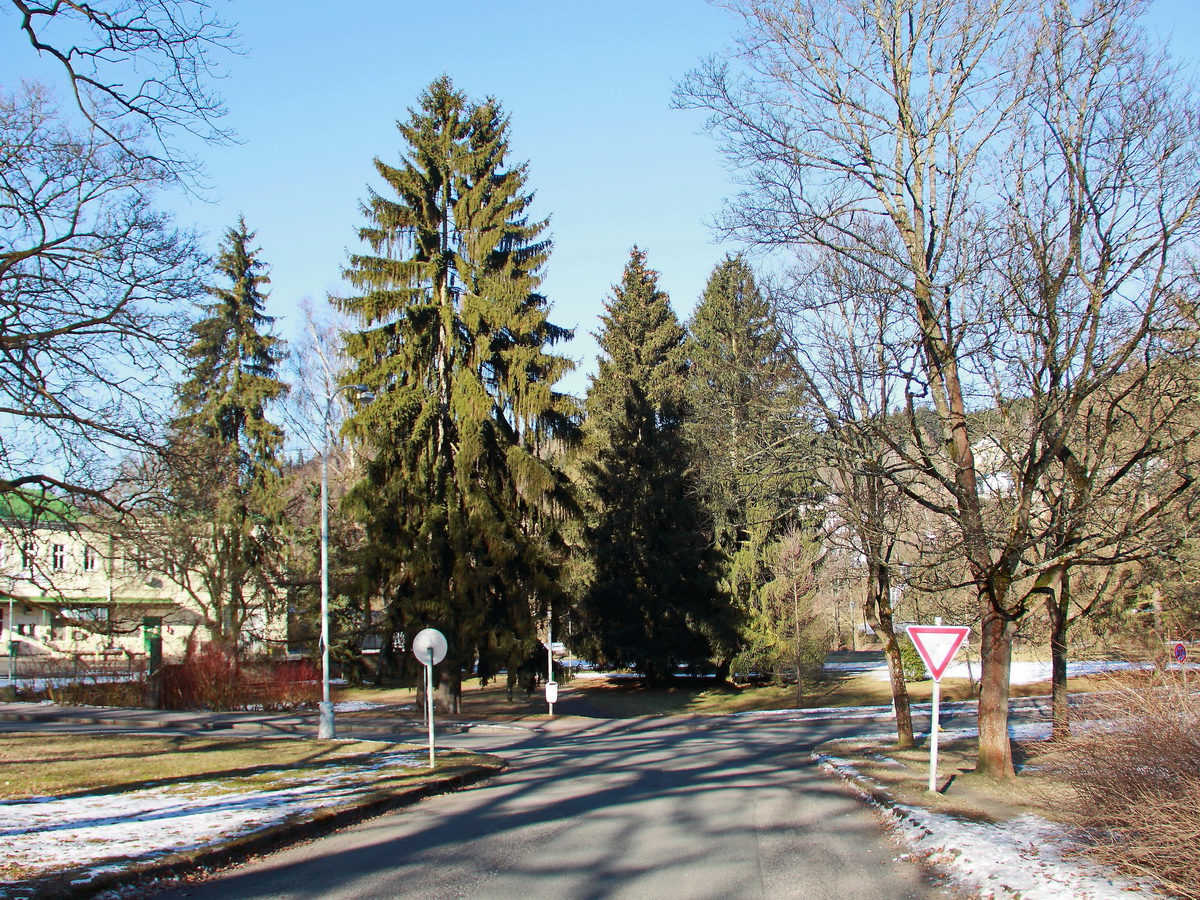 Blick am 28. Februar 2018 bei etwas Schnee im Kurpark von Franzensbad.